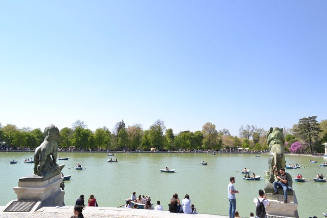 En esta época del año el clima de Madrid es perfecto, así que decidimos descubrir sus sitios naturales, nos tomamos un día para visitar el parque El Retiro, un parque en pleno centro de la ciudad, realmente un retiro natural para los Madrileños, lleno de arboles y caminerias, pequeños restaurantes al aire libre, un lago en medio del parque y con una historia de mas de 400 años , imagínense su historia y la energía que puedes sentir dentro de este templo natural. Recorriendo el parque visitamos el palacio de cristal un centro de exposiciones artísticas, su estructura como sacada de cuentos, un palacio completamente en vidrio.